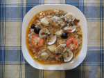 Ingredientes para cuatro personas: Arroz bomba o redondo, 4 tazas, 350 grs. Rape, 500 grs. Colas de langostino crudos, 250 grs. Almejas blancas, 150 grs. 1 cebolla. 3 dientes de ajo. 3 pimientos verdes de freír hermosos. 3 tomates pera. Aceituna negra deshuesada, 150 grs. Caldo de pescado y marisco, 2 l.. 1 vaso de… Leer más »