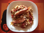 Ingredientes para dos o tres raciones: Salmonetes de roca, 500 grs. Restos congelados de merluza, gambones y fumé restantes de otro plato. 1 pastilla de caldo de pescado. 1 puerro. 1 vaso vino blanco seco o txakoli. 1 cebolla. Pimiento rojo del país, 230 grs. Tomate pera, 300 grs. 3 tazas arroz bomba. 7 tazas… Leer más »