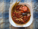 Ingredientes para cuatro raciones: Garbanzos, 350 grs. Soja, un puñado que quedaba perdido. Cebolla, 400 grs. Puerro, 300 grs. Apio, 150 grs. Pimiento verde, 350 grs. Pimiento rojo, 350 grs. Zanahoria, 200 grs. Tomate en rama, 500 grs. Panceta con magro, 100 grs. 1 morcilla fresca de cebolla pequeña. 1 pimiento choricero. 3 dientes de… Leer más »