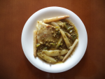 Ingredientes, para 3 o 4 personas: 500 grs de aletas de raya congelada o 300 grs. de fresca. Patata nueva, 500 grs. Pimiento verde de freír, 100 grs. 200 grs de guisantes en conserva. 220 grs. espárragos en conserva. 3 dientes de ajo. 1 guindilla de cayena comercial. 1 cucharilla de agar-agar. 1 vaso de… Leer más »