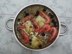 Ingredientes, para 3 o 4 personas: 3 o 4 lomos de bacalao. Unos 500 grs. 1cebolletas. 200 grs. 400 grs. escurridos de borrajas en conserva. Es también posible utilizar pencas de cardo. 150 grs. de aceitunas negras deshuesadas. 4 palitos de mar (surimi). 6 a 8 gambones rojos. 2 dientes de ajo. 1 pimienta de… Leer más »