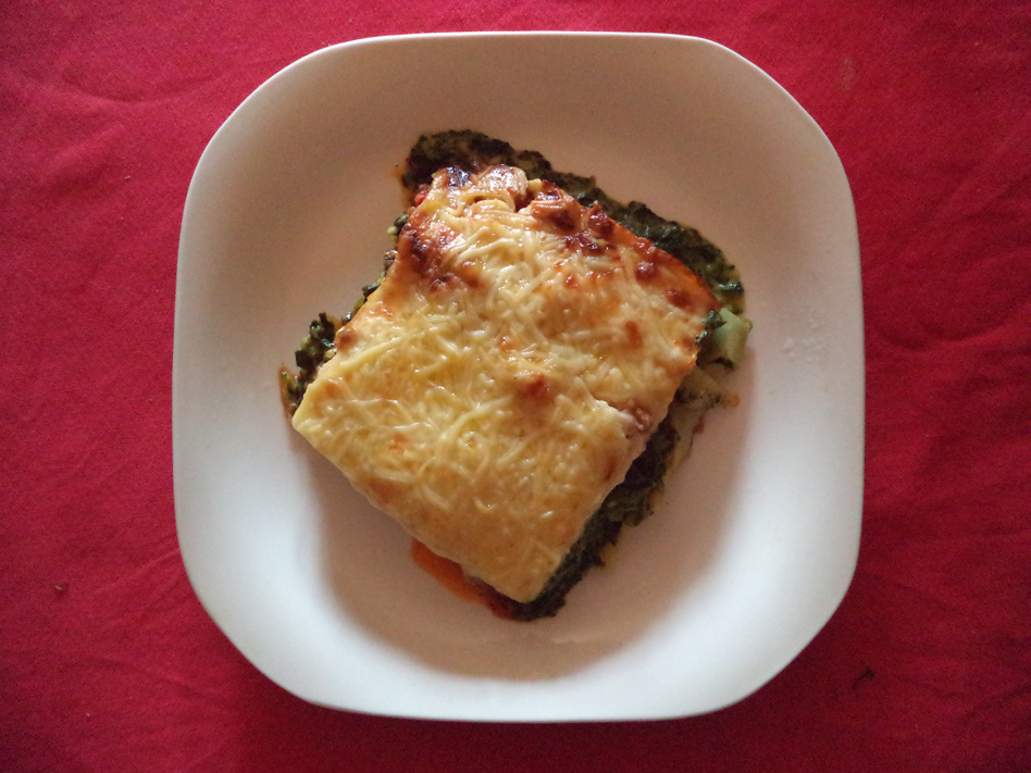 Lasaña de espinacas y carne.