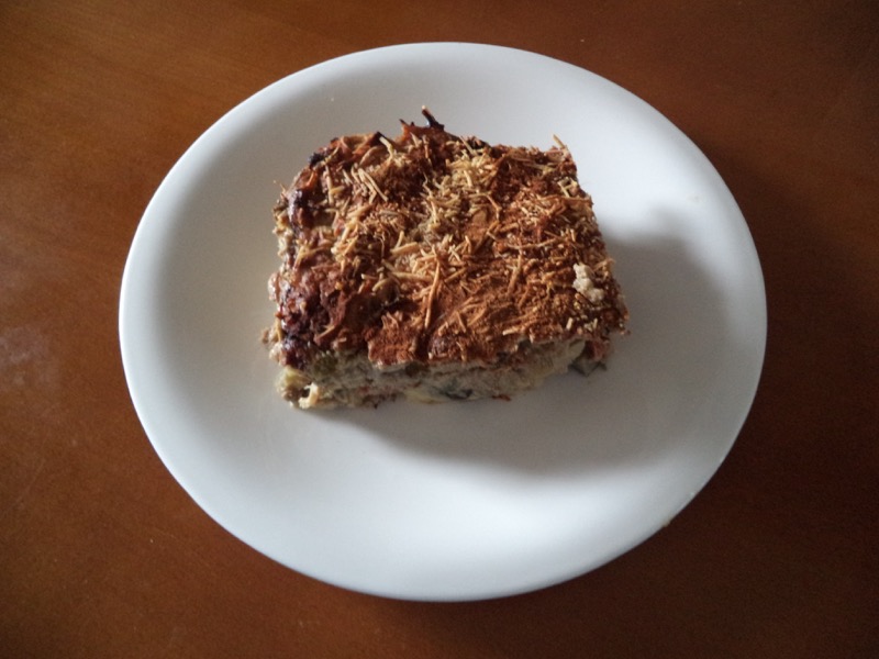 Hornear unos 20 minutos en el horno precalentado a 180º, comprobar con una aguja la consistencia. Cubrir con el queso rallado y gratinar.