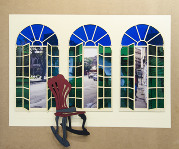 Sobre tablero de DM: Fotografía, Aplicaciones digitales, DM recortado, Pintura. Papel celofan. Medidas: 120x100 mm.
