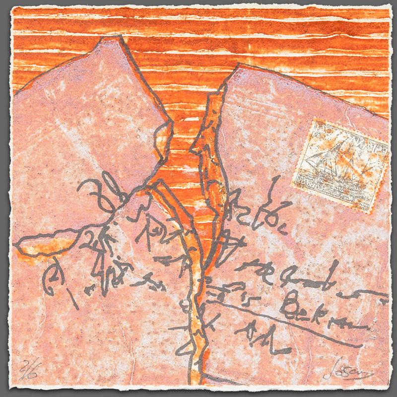 b-5-a, b-5-b. Calcografía: 1 tintas. Relieve: 1 tinta. Litografía: 1 tinta. Papel Incisione de 310gr/m2 de Cartera Magnani. 145x145 mm. Edición: 6, 2 P.A., 1 H.C.
