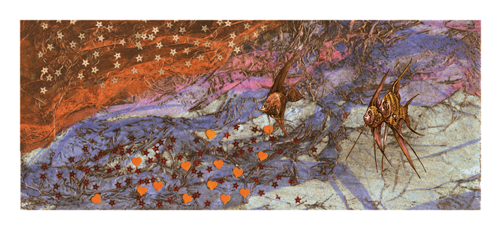 2009 – Ediciones Golondrinas de Papel. Carpeta: “Fabulaciones fabuladas” Varios autores. Los peces rusos. Técnicas varias. Impresión digital Papel: Incisione 250 gr/m2 de Cartera Magnani. Papel y mancha: 400x150 mm. Edición: 7.