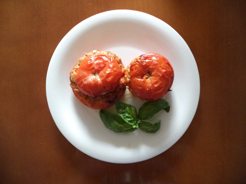 Rellenamos el cuerpo de los tomates y los cerramos con su boina.